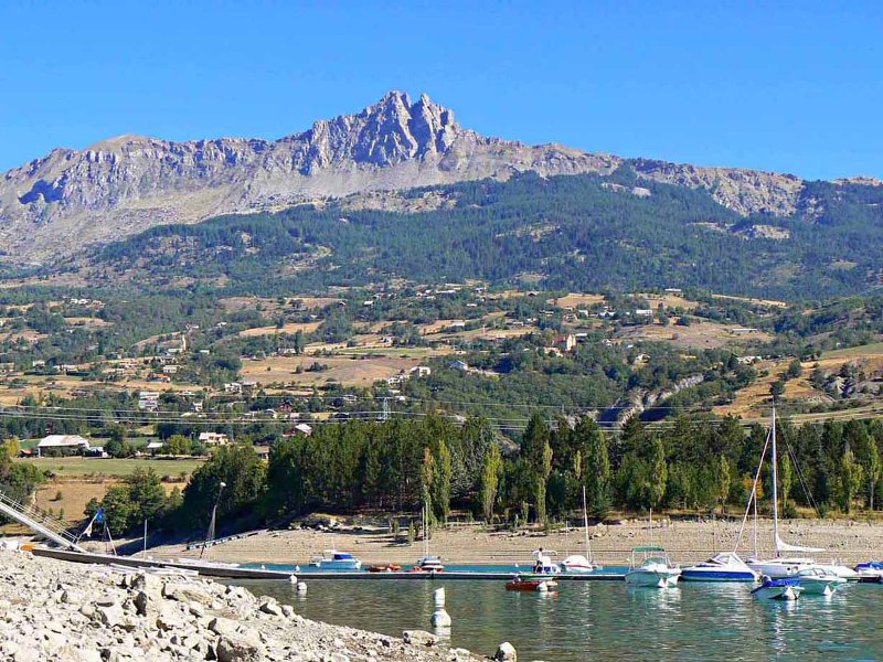 Baia St Michel... Scorcio della splendida baia sul lago artificiale di Serre-Poncon, distante circa 30 km da Gap direzione Briancon Monginevro. Più a nord della baia, circa 4 Km, vicino all'autocamping Le Nautic vi è una presenza di naturisti.