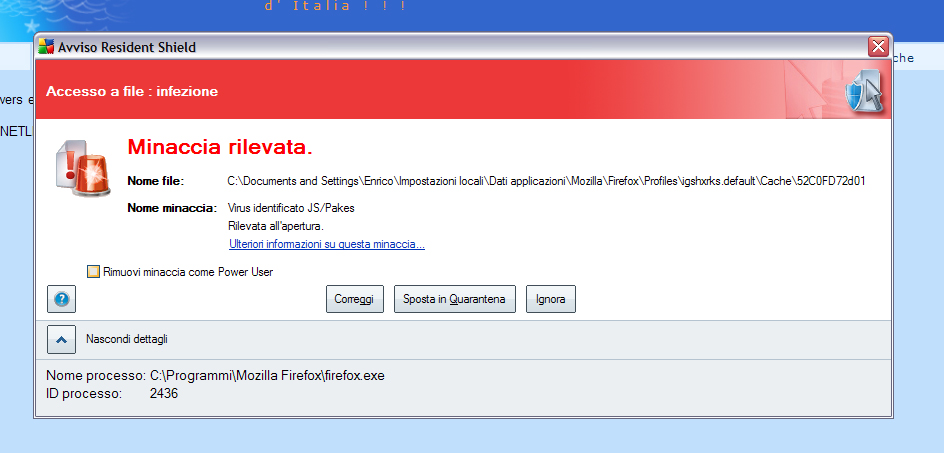 e' un problema che abbiamo riscontrato anche noi. a ci succede la stessa cosa chiediamo di scrivere in questo post i messaggi dati dall'antivirus. molto probabilmente non e' un virus vero e proprio, ma dobbiamo fare dei controlli per esserne certi. |