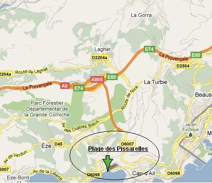 - Plage des Pissarelles a Cap d'Ail, un paio di km. da Monaco in direzione Nizza; piccola, ma molto carina e ben frequentata;