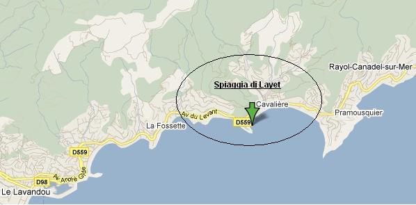 - Layet situata tra le Lavandou e Cavalière a pochi metri dalla strada statale; spiaggia molto bella ma subito sovraffollata in alta stagione.