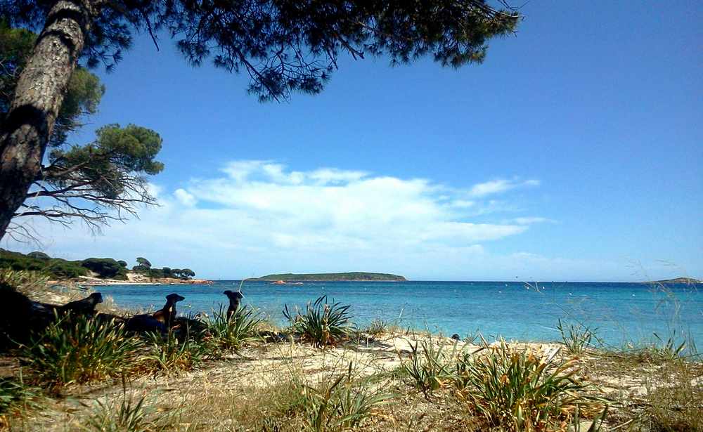 nascoste dall'ombra di un pino alla palombaggia si vedono le silouette delle tre bestiacce (le bambine pelose)