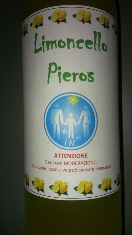 Il limoncello offerto da Piero: notare la nota sull'etichetta.