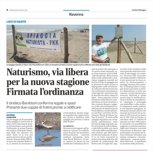 Riapre la stagione naturista Lido di Dante e Lido di Classe (Ravenna)